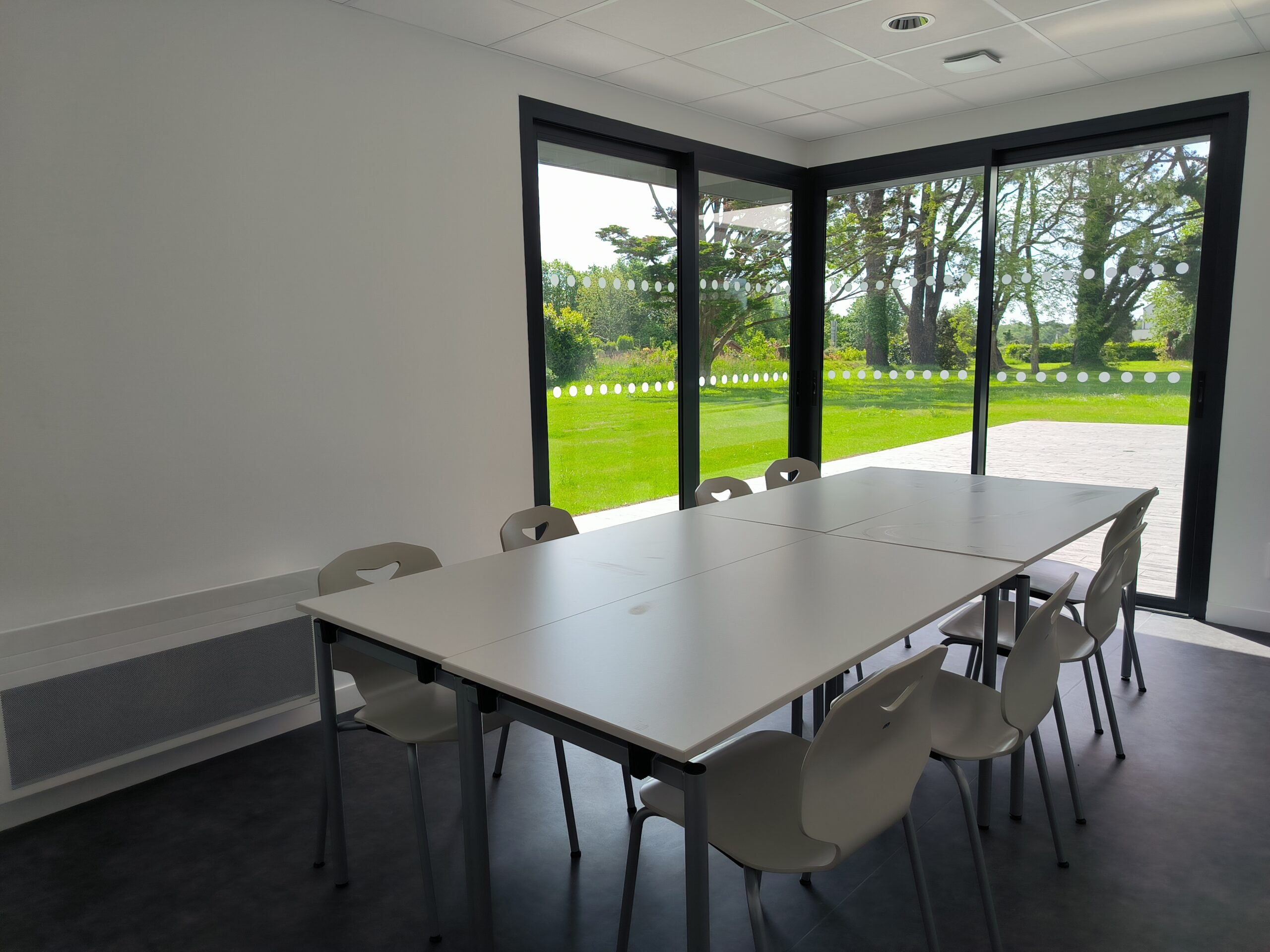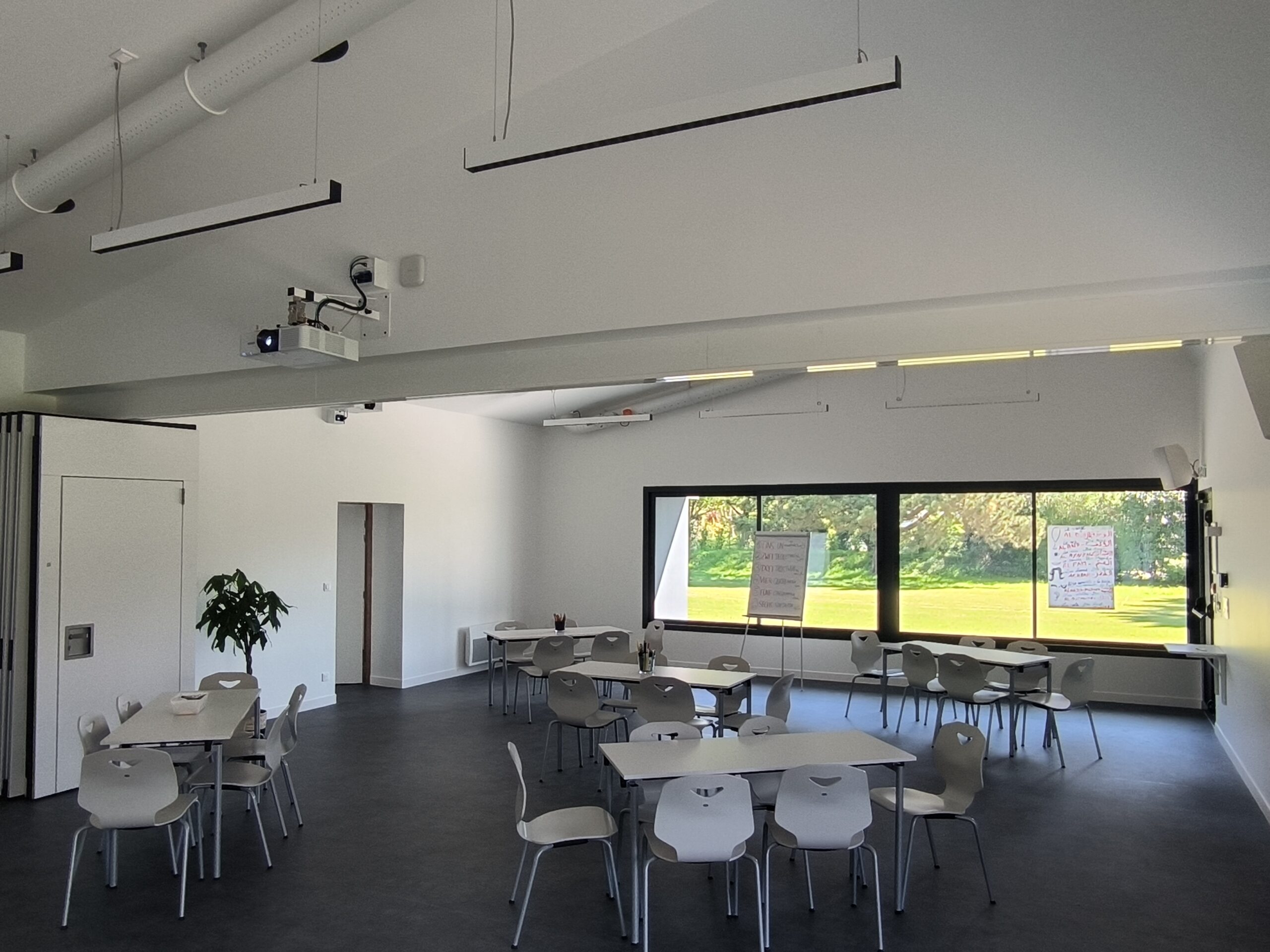 Afin de préparer leurs interventions ou simplement se détendre, les animateurs ou formateurs sont invités à s’installer dans une salle adjacente largement vitrée et ouverte sur le parc avec terrasse.